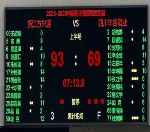 1月15日晚,浙江方兴渡继续坐镇主场黄龙体育馆,迎来了赛季至今一场未胜的四川丰谷酒业。最终,浙江方兴渡93:69轻取对手,豪取主场八连胜。本场比赛,浙江方兴渡五人得分上双,孙铭徽和胡金秋均砍下全场最高的14分;四川队仅有三人得分上双,段睿骐拿到14分,但同时有8次失误。